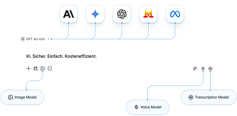 Gebündelte KI-Power in einer intuitiven Plattform. Keine Sorge, welche KI morgen führt. Nutzen Sie immer die besten KI-Modelle der führenden Anbieter.